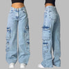 Modré rifľové cargo nohavice Rock s vreckami, baggy