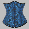 Modrý kovový korzet s barokovými žakárovými ornamentmi