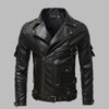 Pánska čierna kožená moto bunda Goth Punk s cvočkami a pásikmi