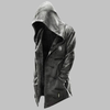 Gotický pánsky plášť s kapucňou - čierny dlhý kabát