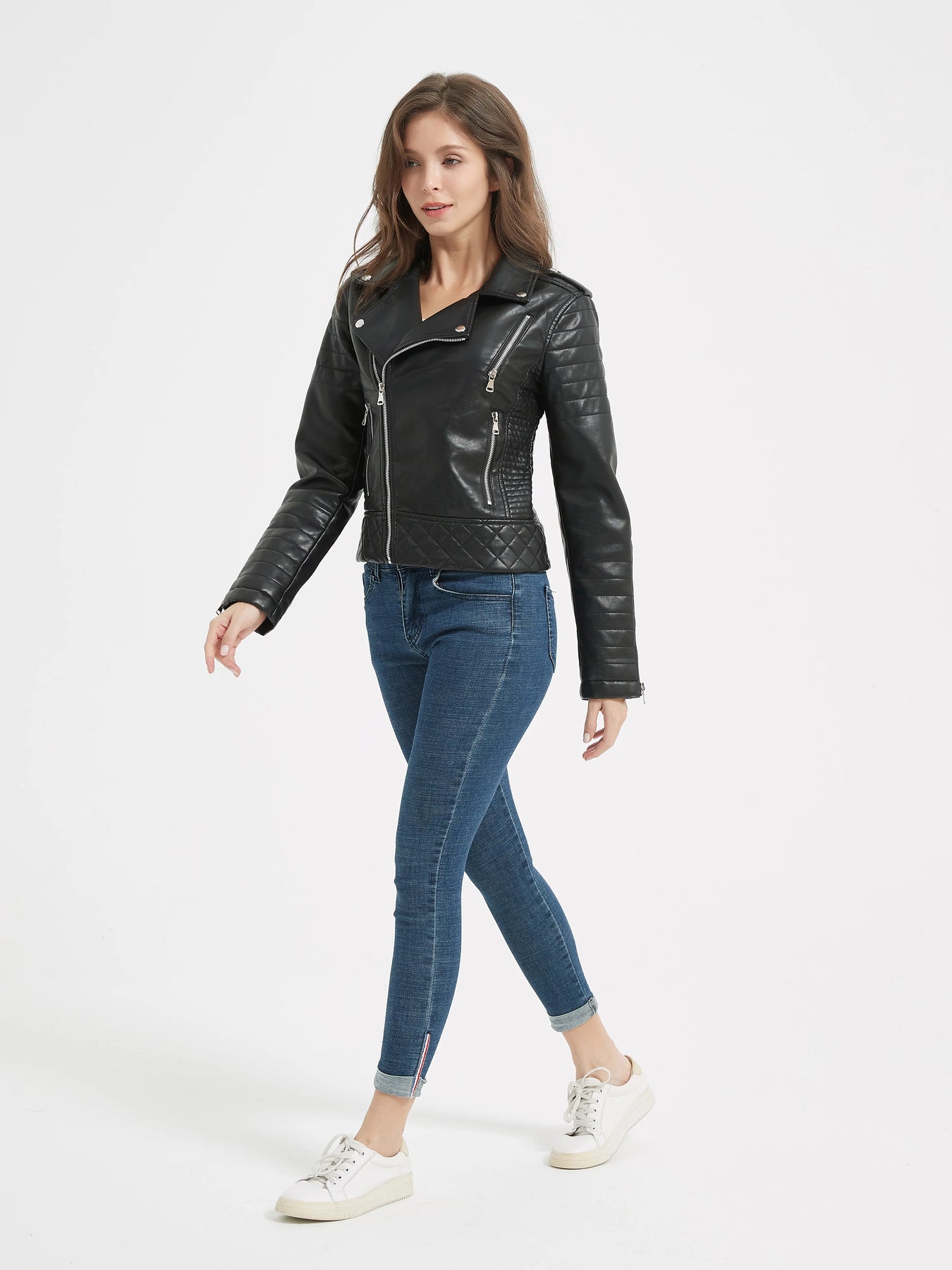 Punk kožená bunda s prešívanými vsadkami Zobraziť možnosti