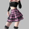Punk rock grunge kockovaná sukňa s čipkovaným lemom