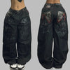 Punkové džínsy s cvočkami a grunge potlačou XXL