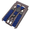 Rock modré traky s károvaným vzorom a chrómovanými kovovými klipsami