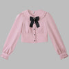 Ružová vintage blúzka Jirai Kei s čiernou mašľou Zobraziť možnosti