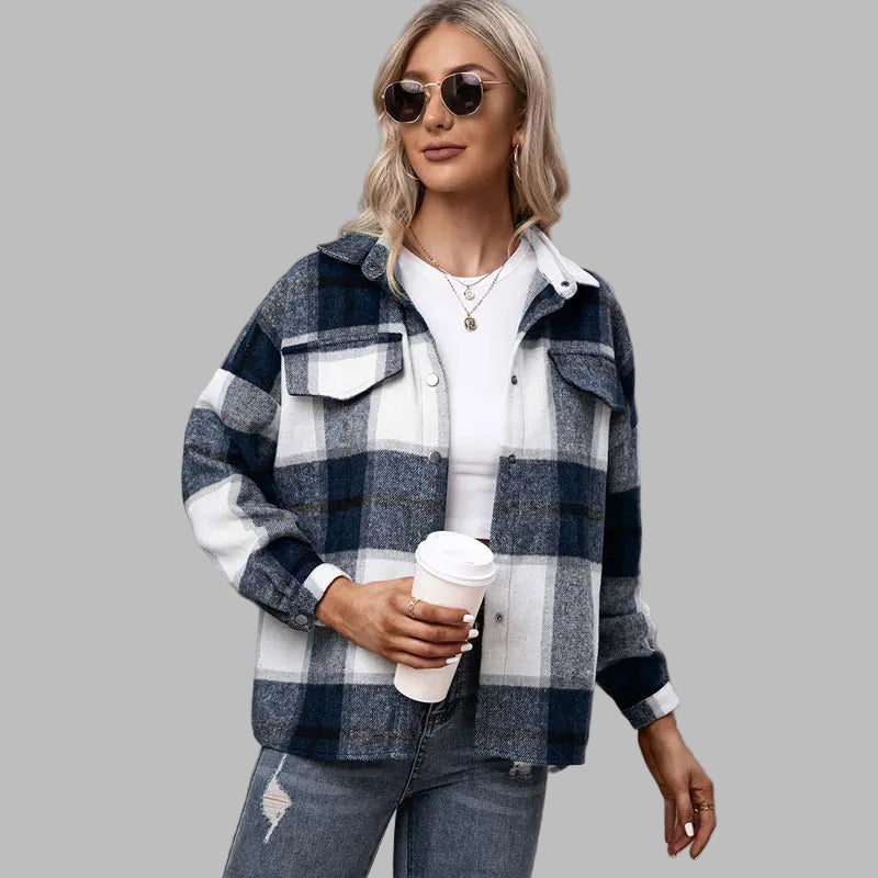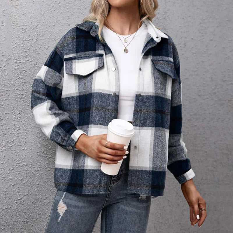 Šedá grunge kockovaná košeľa s vreckami