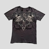 Šedé metal tričko s lebkami a ornamentálnym krížom