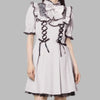 Šedé šaty Jirai Kei s čipkovanými vsadkami a mašľou