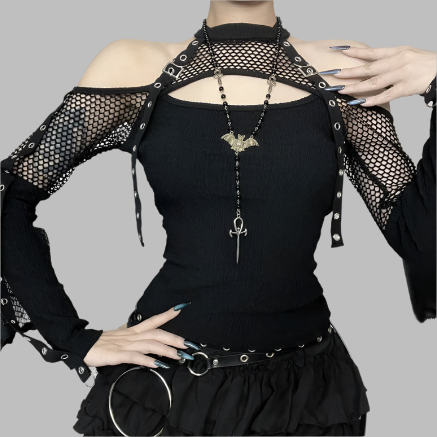 Sexi Gotyka čierne čipkované tričko