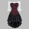 Steampunk bordový korzet s čiernou čipkovanou hi-lo sukňou 6XL