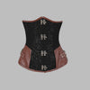 Steampunk čierny korzet s hnedými koženými panelmi