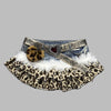 Steampunk džínsová sukňa s leopardím vzorom a kožušinkou