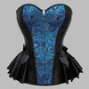 Steampunk gotický korzet s modrým vzorom a kovovými háčikmi