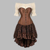 Steampunk hnedý komplet korzet s blúzkou a asymetrickou sukňou 6XL