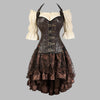 Steampunk kožený korzet s prackami a čipkovanou sukňou