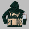 Zelená mikina YEW Studios v štýle grunge s vintage potlačou